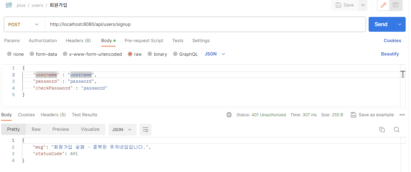2) 회원가입 실패 - 중복된 유저네임
