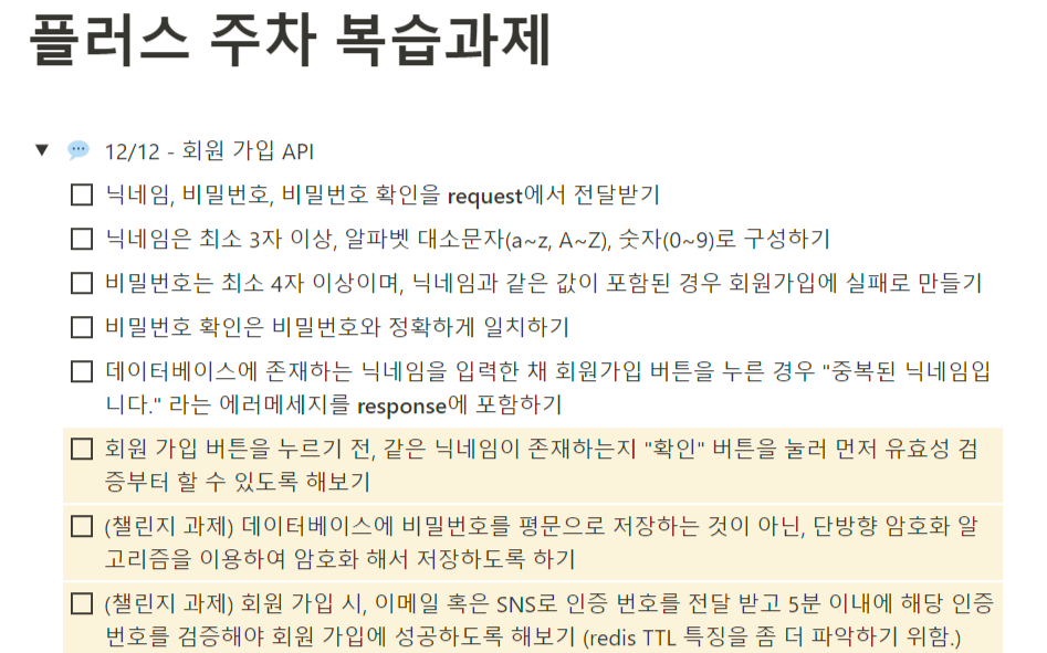 - 비밀번호와 비밀번호 확인 불일치할 경우, 비밀번호에 닉네임과 같은 값이 포함된 경우, 유저네임이 중복된 경우를 예외처리했다.
